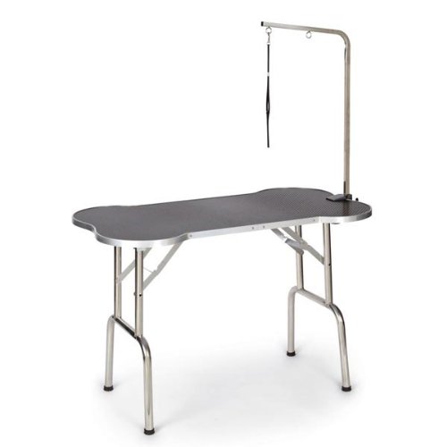 - Folding grooming table combines elegant design with durability to produce a stable staging ground for pet groomers